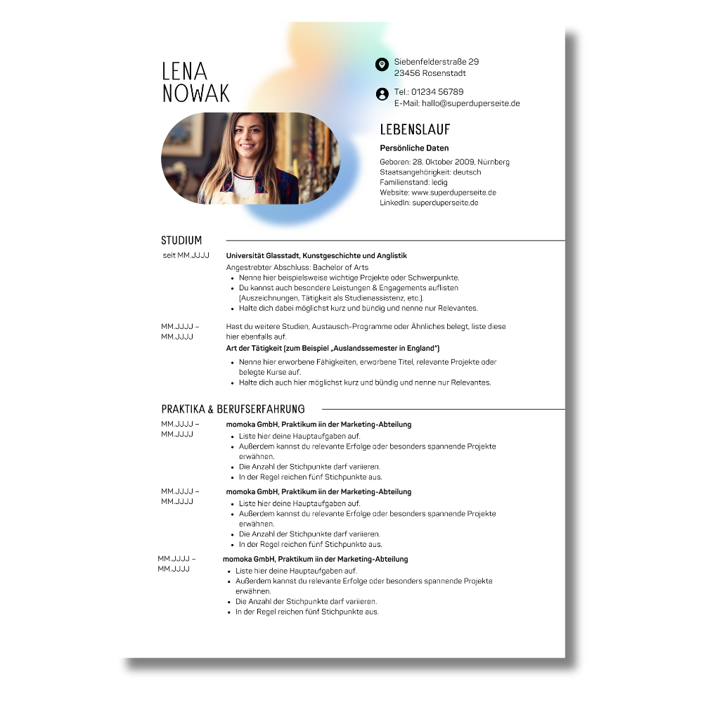 Trend CV 2 Seiten mit Bild